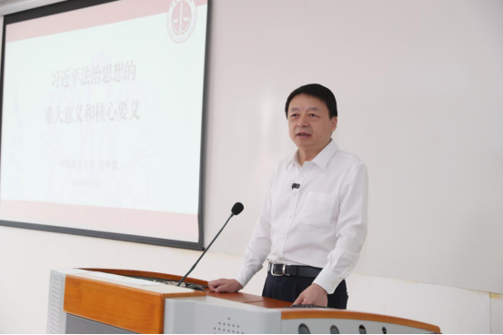 2025级应用型法学博士研究生秋季学期集中授课于9月2日开课,校长马怀德讲授习近平法治思想“第一课”。马怀德围绕习近平法治思想的重大意义、核心要义和实践要求进行全面阐释。他从全面依法治国的重大意义、政治方向、重点任务、工作布局、重要保障五个方面对习近平法治思想的核心要义进行系统讲解。并指出新时代贯彻落实习近平法治思想的三点实践要求:一是将全面依法治国各环节要求落实到位,二是深入研究全面依法治国实践中的新问题、找到解决问题的突破口,三是加快培养德法兼修的高素质法治人才,不断提高法治工作队伍的素质。