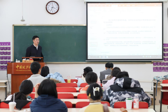 为深化学校与实务部门的协同育人机制,搭建应用型法学博士研究生与在校生之间的学术交流平台,研究生院持续组织开展“实践领航 启法未来”应用型法学博士研究生法治实践系列分享会。11月11日,由法学院协办的第三讲活动在昌平校区成功举办。本次活动由2022级宪法学与行政法学专业应用型法学博士研究生、司法部行政执法协调监督局二级巡视员彭飞担任主讲,中国政法大学法学院讲师赵海全担任与谈人,研究生院副院长万青主持活动。