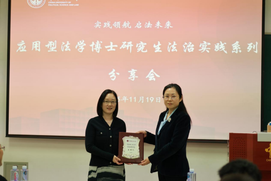 活动最后,万青副院长代表研究生院为张艳法官颁发了“实践领航 启法未来”系列分享会主讲人证书,以此向她带来的精彩分享表示诚挚感谢。