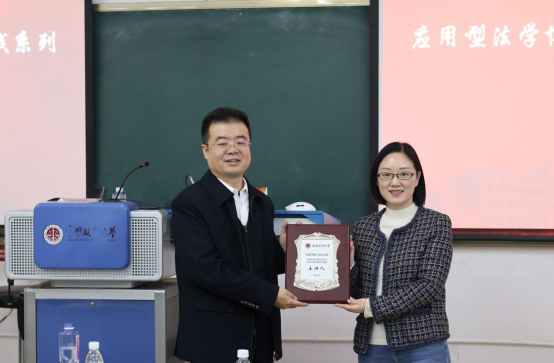 活动最后,万青副院长代表研究生院向赵欣副院长颁发了“实践领航 启法未来”系列分享会主讲人证书,以此向他带来的精彩分享表示诚挚感谢。